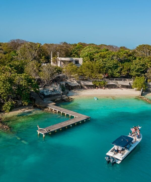 El pasadía incluye transporte en lancha rápida de lujo con ida y regreso desde el Muelle de La Bodeguita, con hidratación incluida durante el viaje y una copa de bienvenida de champaña (limonada para niños). Además, como parte del paquete, podrás disfrutar de un tour panorámico opcional de 45 minutos por el archipiélago, que te permitirá conocer la belleza del resto de las Islas del Rosario.
